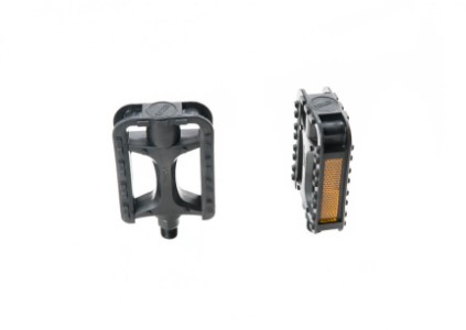Reflectores de plástico al costado de cada pedal